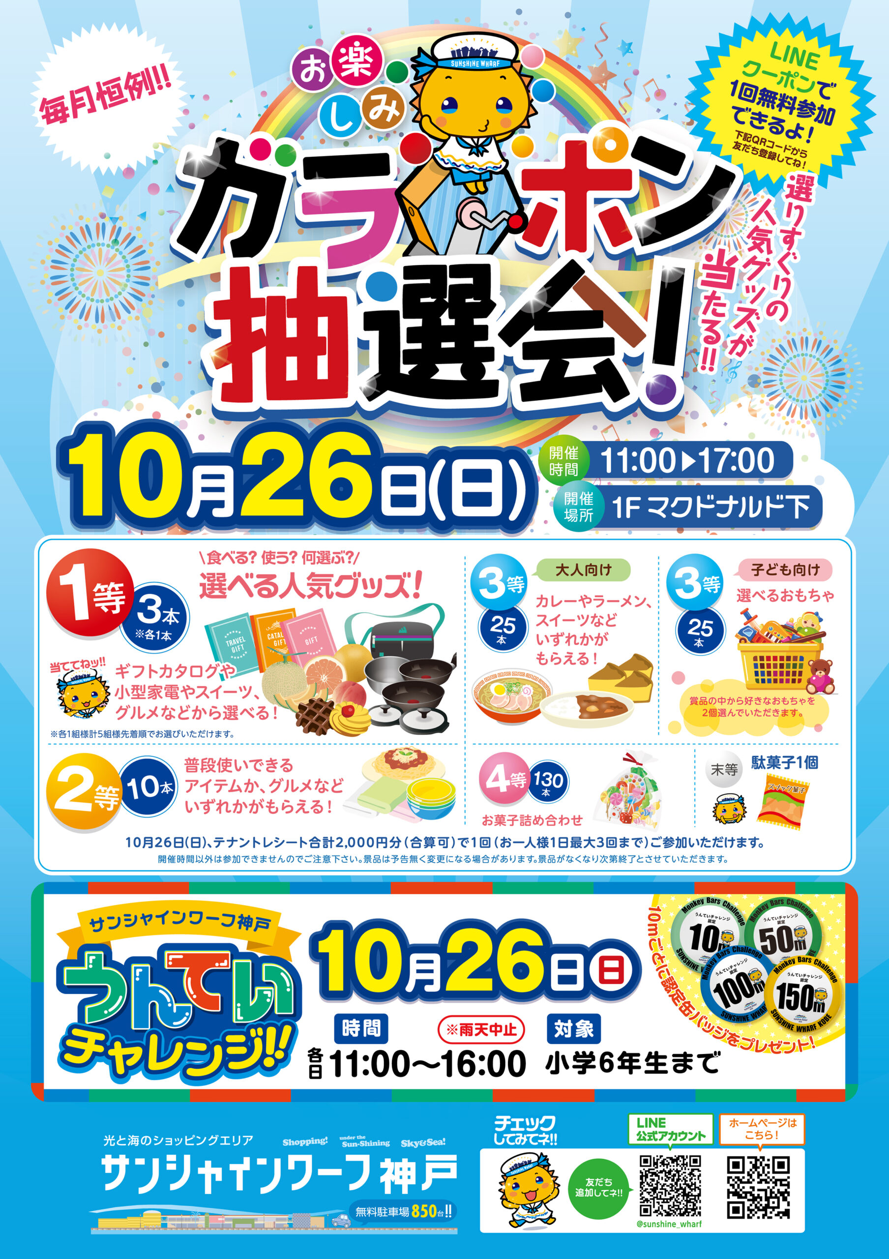 次回のガラポン抽選会は10月26日(日)です! ♪盛りだくさんの景品をご用意してお待ちしております…