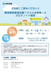 野菜摂取度測定器(ベジミル)でカロテノイド測定♪ 日 時:10月18日(土)15:30~17:30…