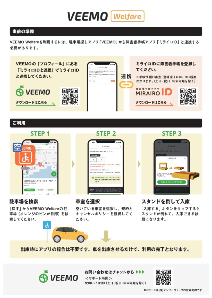 障がい者手帳をお持ちの方のみ「VEEMO」を通じて