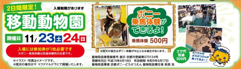 ※移動動物園は23日(日)24日(月祝)のみ開催です。