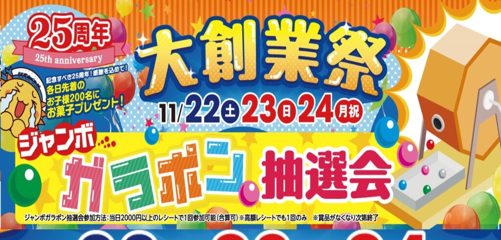 創業より25周年を迎え、日頃の感謝を込めてご来場されるお客様に喜んでいただける周年イベントを開催します。